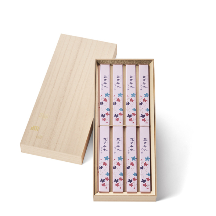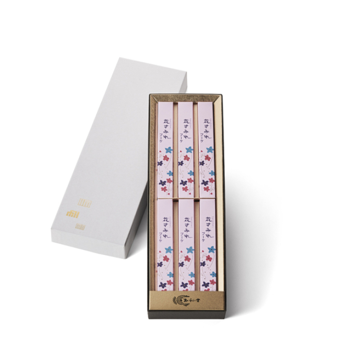 | 6065/6066 | 花すみれブーケ 短寸8把入 塗箱/桐箱 | 3,000円 | 6067 | 花すみれブーケ 短寸6箱入 桐風紙箱 | 2,000円 |