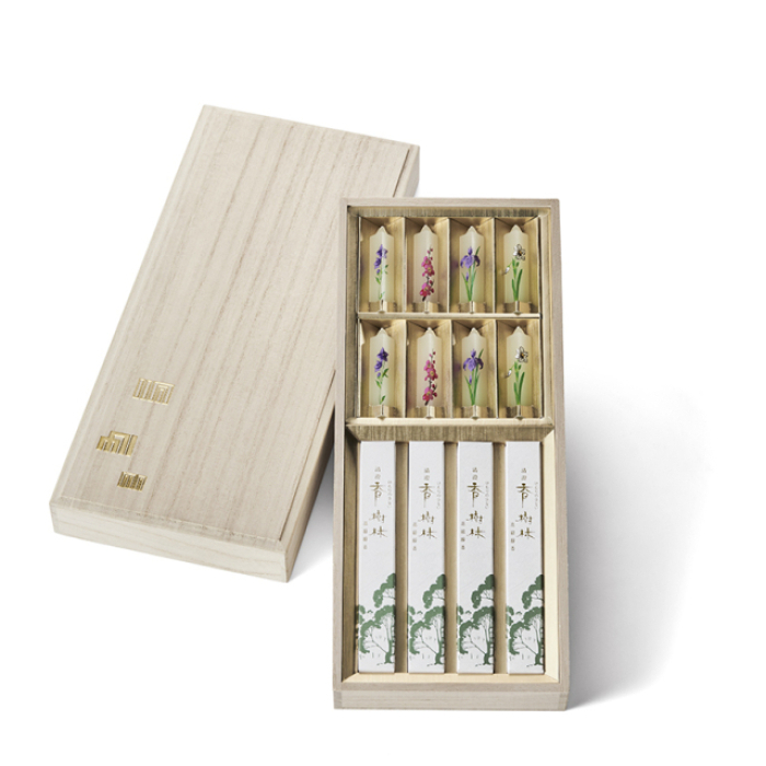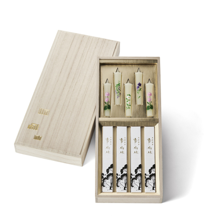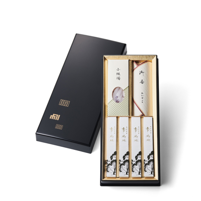 | 0042/0039 | 瑞 雲 短寸10把入 塗箱/桐箱 | 4,000円 | 6297 | 香樹林・みつろう 詰合せ 塗箱 | 3,800円 |