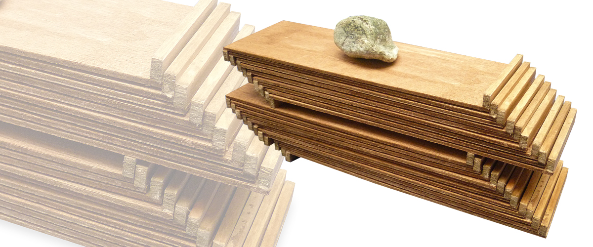 昔の乾燥工程では、お線香は一度軽く反り返ります。それを干し板に挟み込んで重石を載せ、癖を直していました。当時の線香は全て把の状態で販売されていましたので、曲りは問題は無いのですが、近年、バラ詰めの形態が一般的になり、湿度の影響で線香が曲がってしまう不具合が起きるようになりました。